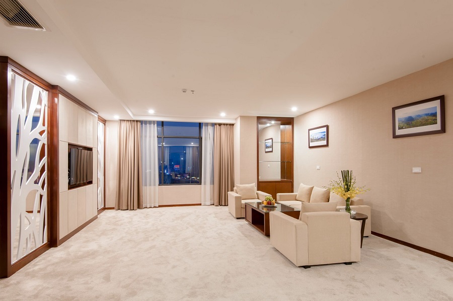 120 m2 là kích thước rất lớn đối với hạng phòng dạng Presidential Suite tại Mường Thanh Lào Cai. Với kích thước khá rộng, những căn phòng này được bố trí 02 chiếc giường đôi.