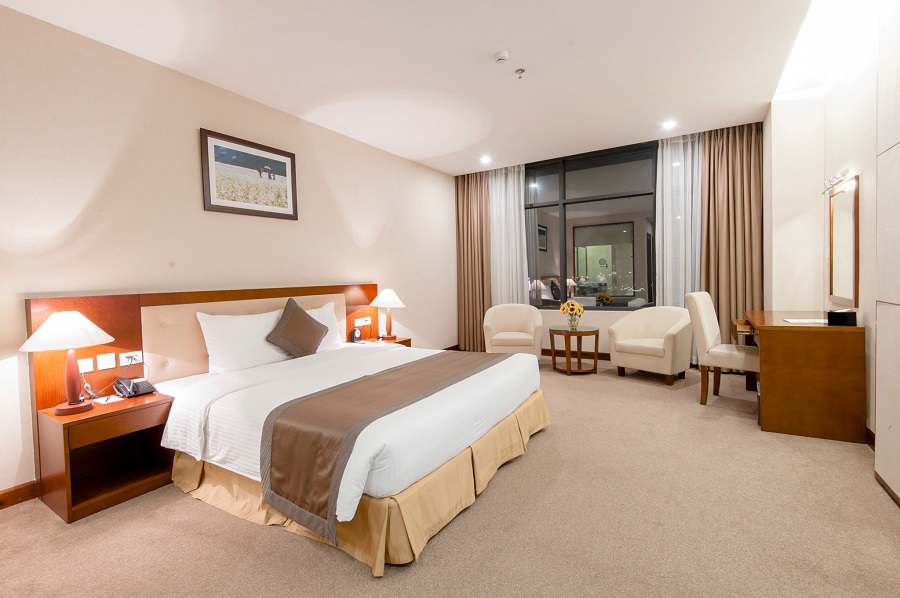Phòng với diện tích 35m2, một giường king size kích thước 1,8m x 2m, hướng phòng là hướng phố, đầy đủ các thiết bị nội thất nhầm đem lại sự thoải mái nhất có thể kỳ nghĩ dưỡng cũng như các kỳ công tác làm việc dài hạn