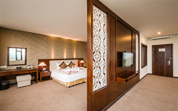 Phòng có diện tích 32m2, có 01 giường lớn kích thước 1,8m x 2m, phòng có cửa sổ view hướng thành phố. Trang bị đầy đủ trang thiết bị nội thất hiện đại để phục vụ du khách trong quá trình lưu trú tại khách sạn.