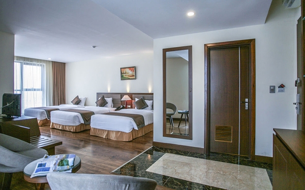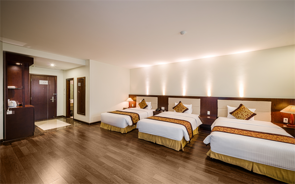 Phòng có 1 giường lớn và 1 giường nhỏ, tiêu chuẩn dành cho 3 người lớn. Phòng có cửa sổ view hướng thành phố. Trang bị đầy đủ trang thiết bị nội thất hiện đại để phục vụ du khách trong quá trình lưu trú tại khách sạn.