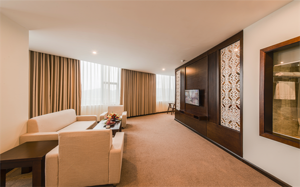Phòng suite rộng rãi có hướng nhìn ra thành phố. Phòng khách riêng biệt có ghế sofa để quý khách thư giãn. Phòng có cửa sổ view hướng thành phố. Trang bị đầy đủ trang thiết bị nội thất hiện đại để phục vụ du khách trong quá trình lưu trú tại khách sạn.
