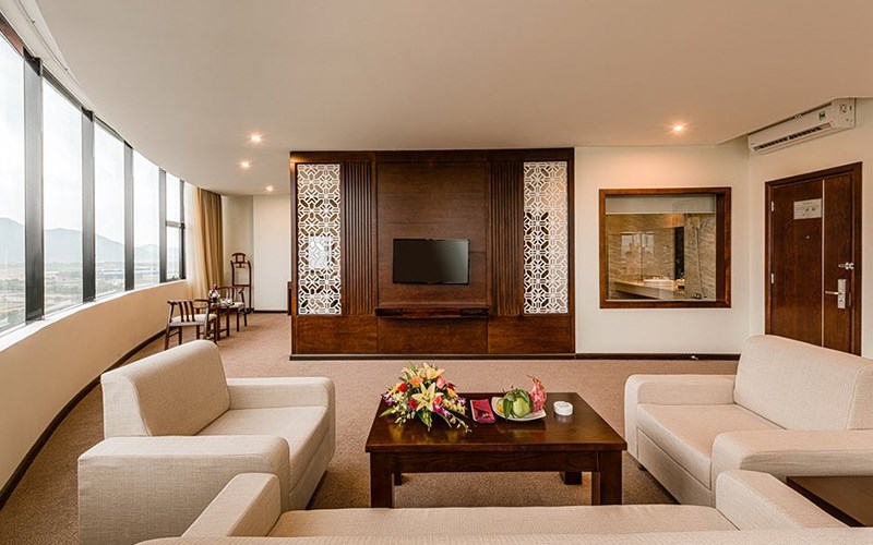 Phòng với diện tích 75m2, một giường queen size cỡ lớn 2m x 2m, đầy đủ các thiết bị nội thất nhầm đem lại sự thoải mái nhất có thể kỳ nghĩ dưỡng cũng như các kỳ công tác làm việc dài hạn. Phòng có Sofa phòng khách, bồn tắm thích hợp để thư giãn sau một ngày làm việc mệt mỏi.