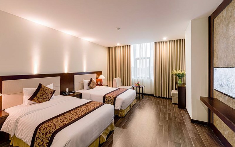 Phòng có diện tích 32m2, phòng có 2 giường đơn 1,2m x 2m, trang thiết bị tiện nghi theo tiêu chuẩn 4 sao phục vụ lưu trú khách du lịch. Phòng có cửa sổ hướng thành phố hoặc bể bơi.